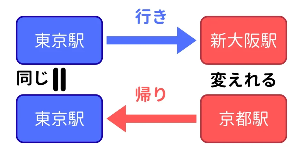 前提:違う駅にできるのは行きの到着駅と帰りの出発駅