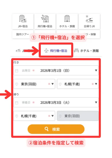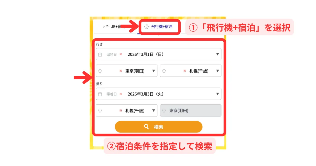 【国内航空券パック】日本旅行で1泊目と2泊目を違うホテルにする方法