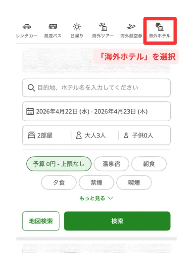お子さま用ベッドの確保は「絞り込み検索」を使う
