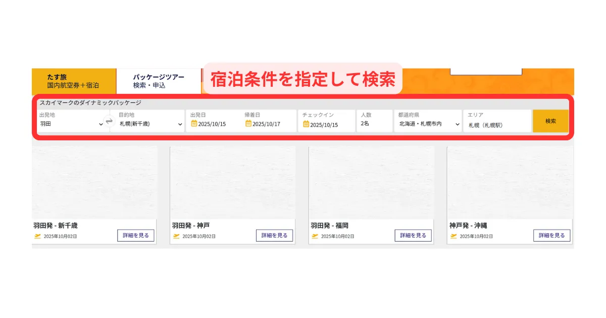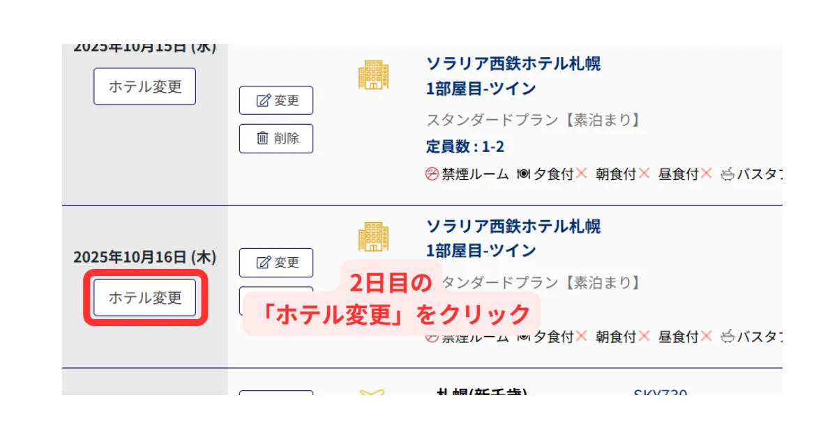 この記事では、スカイマークで1泊目と2泊目を違うホテルにする方法を紹介します。