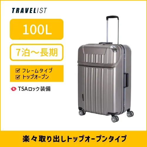 フレームタイプで荷物へのダメージを軽減し、トップオープン機構で荷物の出し入れが容易です。マットな仕上がりが高級感を演出しています。