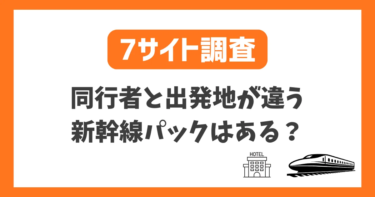 下記 7 サイトを調査しましたが、同行者と出発地が違う新幹線パックは予約できません。