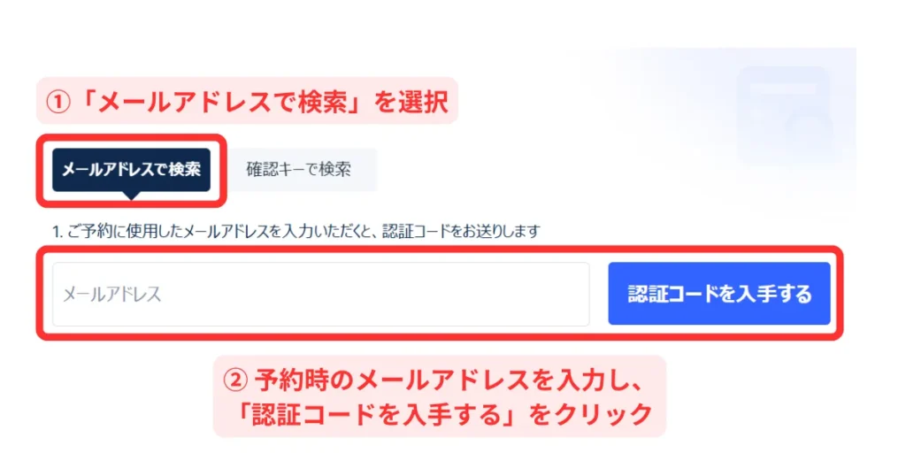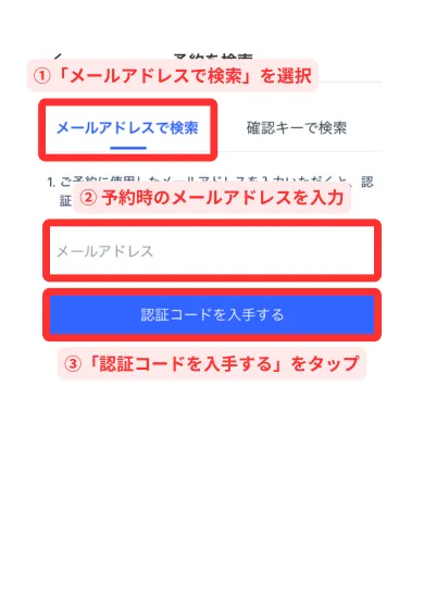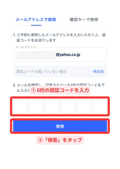 予約時に入力したメールアドレスが間違っていないか確認しましょう。