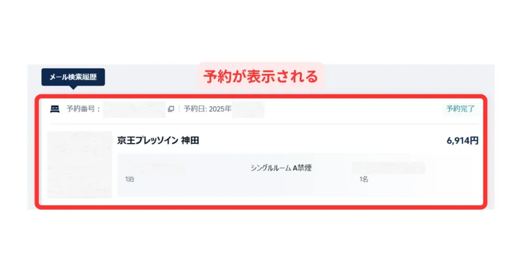 Trip.comで予約を完了させると届く「予約確認メール」で予約内容の確認ができます。