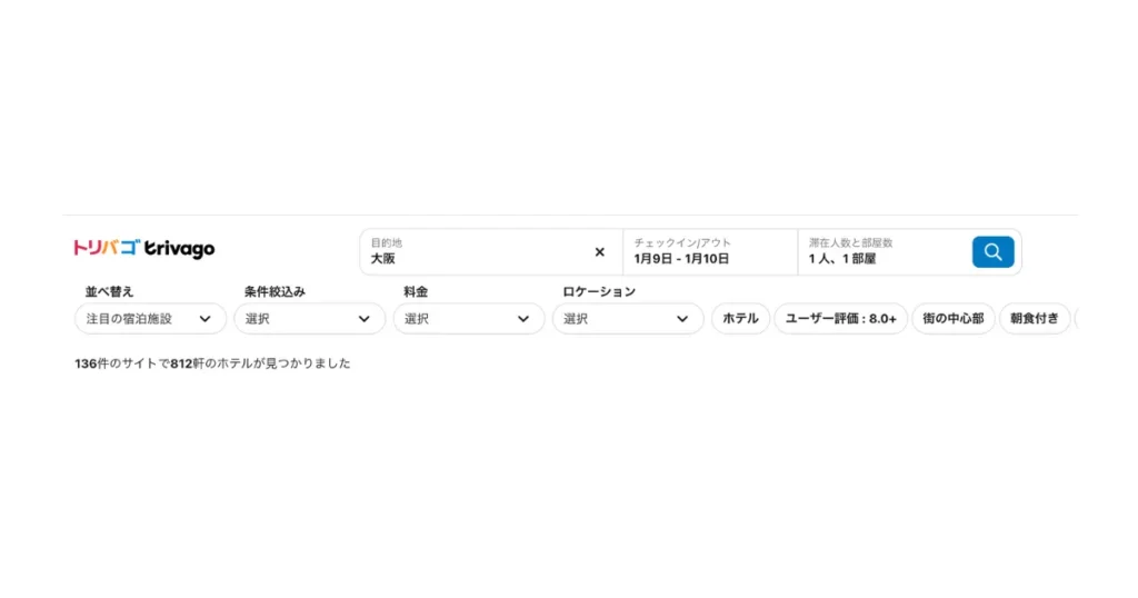 ここからは、トリバゴとアゴダのホテル予約の違いを項目別に比較します。