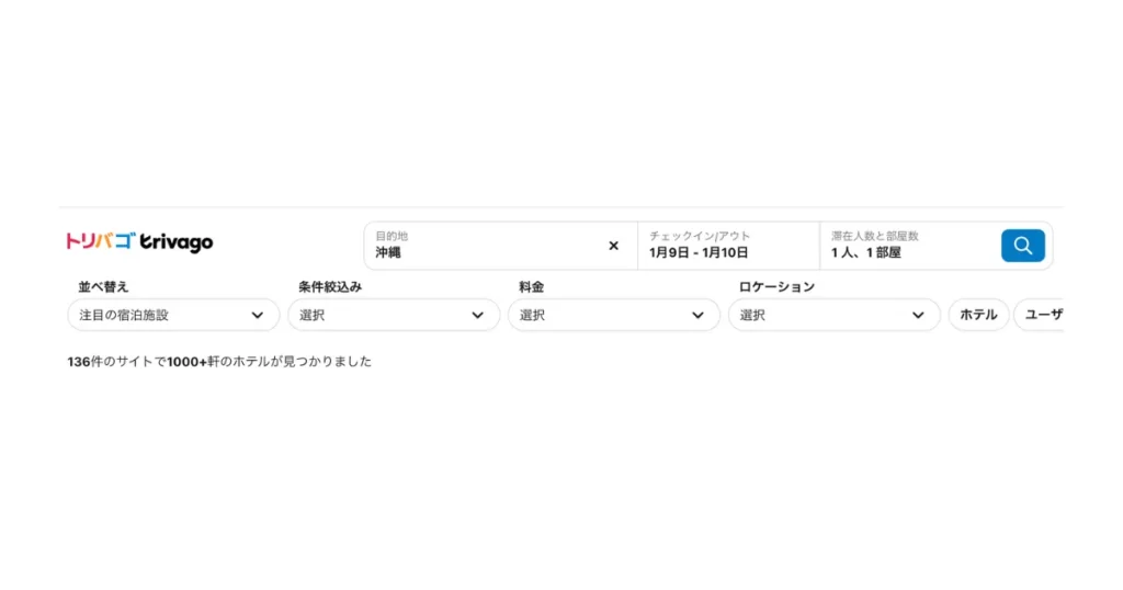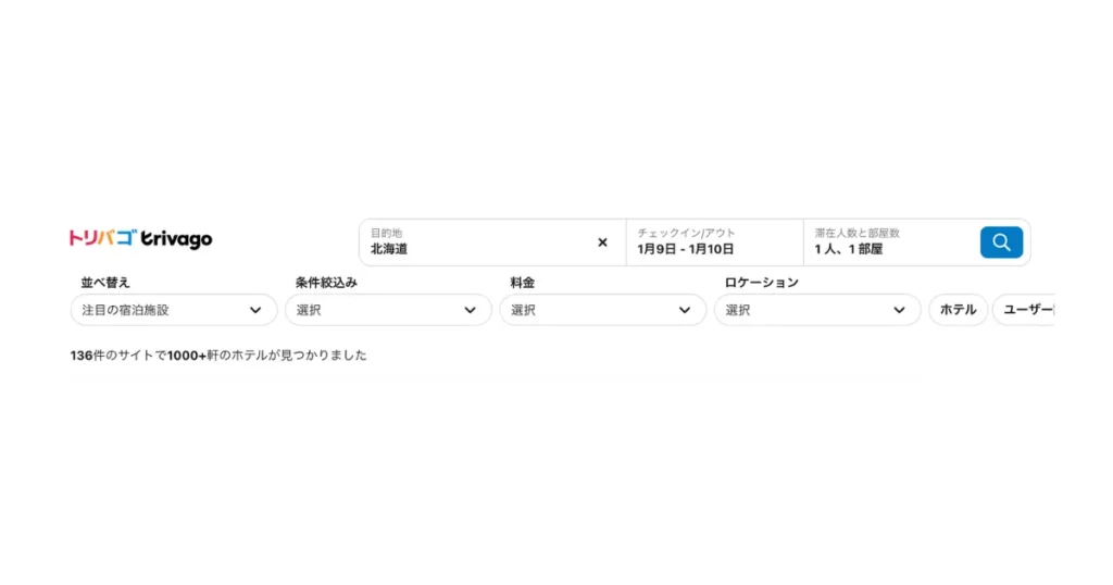 トリバゴは宿泊予約サイトの比較に特化しており、その他の特徴はありません。