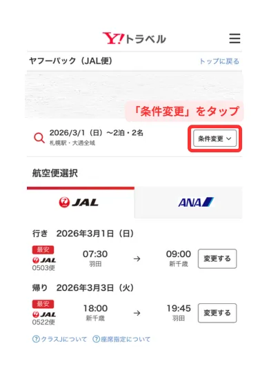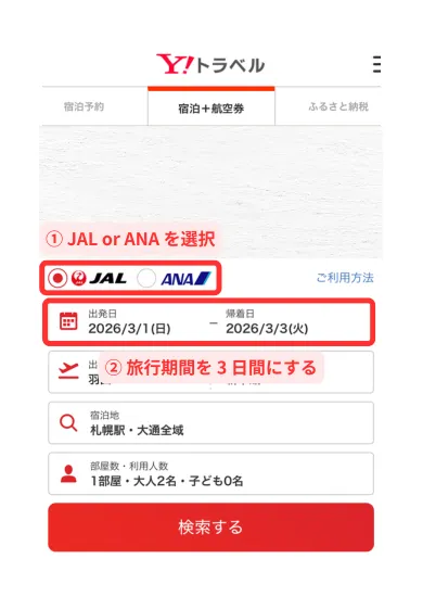 Yahoo!トラベルのヤフーパック(宿泊+航空券)で1泊3日にする方法