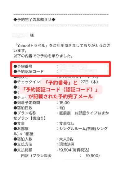 「件名:【Yahoo!トラベル 予約完了】◯◯◯◯年◯月◯日ご宿泊(宿泊施設名など)」