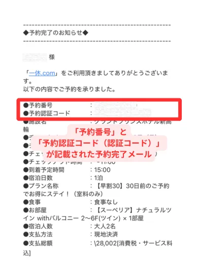 「件名:【一休.com 予約完了】◯◯◯◯年◯月◯日ご宿泊(宿泊施設名など)」