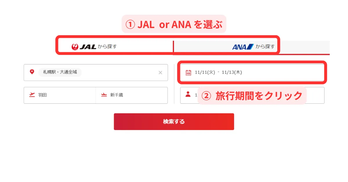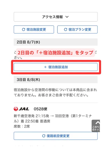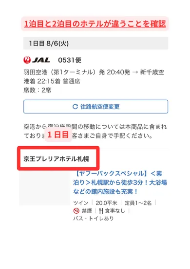 ヤフートラベルの国内航空券パックで1泊目と2泊目を違うホテルにする方法