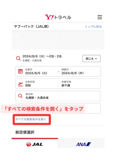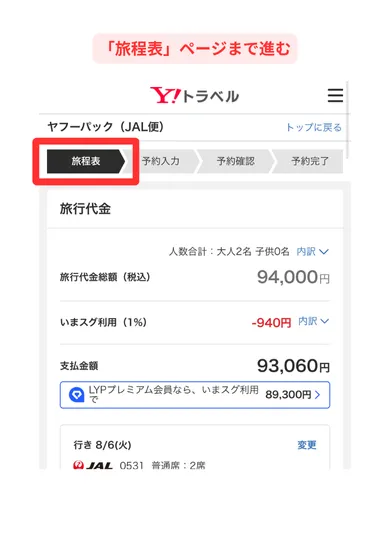 ヤフートラベルの「宿泊+航空券」にアクセス